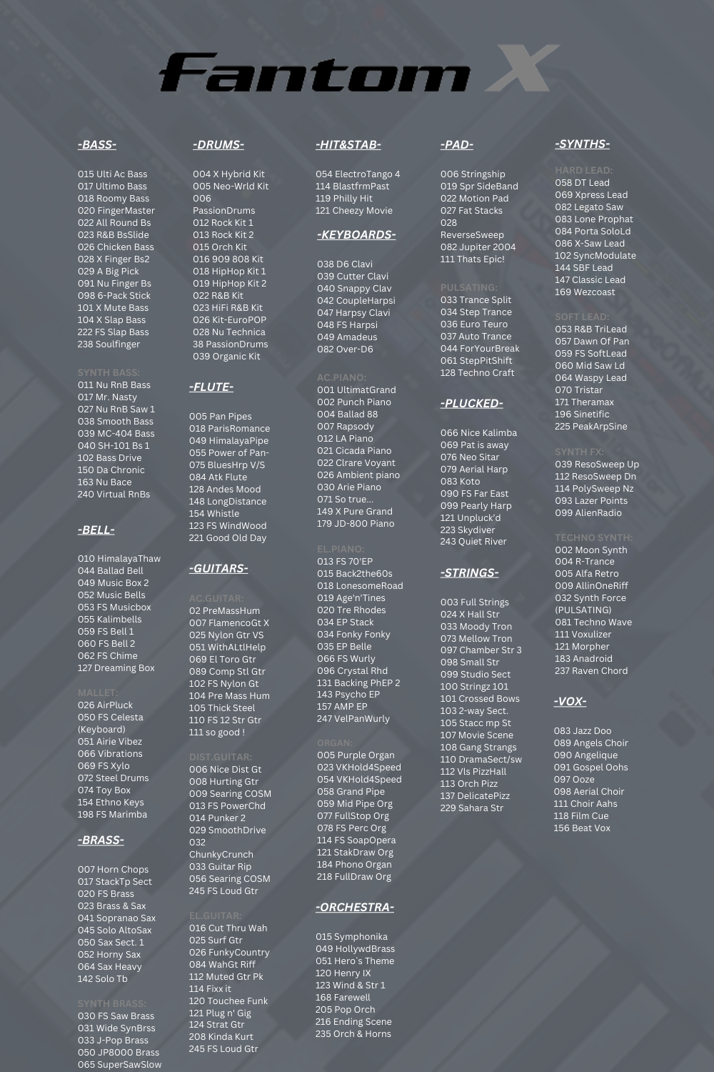 Includes both Roland Fantom G and Fantom X Kontakt Libraries